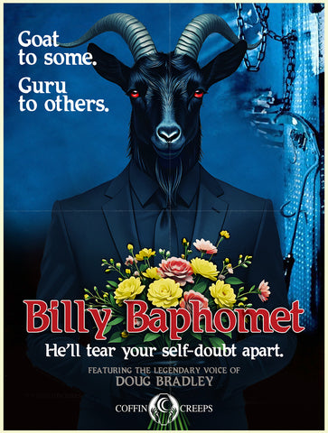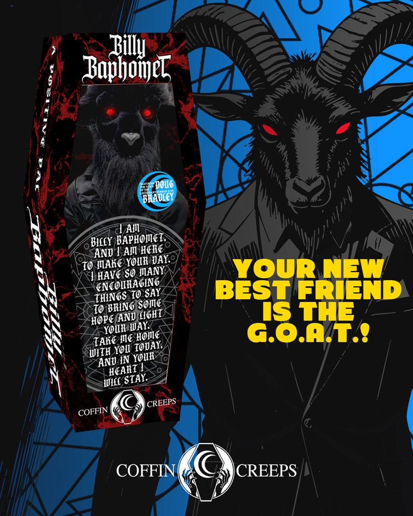 We are beyond thrilled to announce the addition of our own Billy Baphomet to the Coffin Creeps Crew. Featuring the voice of the legendary Horror Icon Doug Bradley of Pinhead / Hellraiser fame.