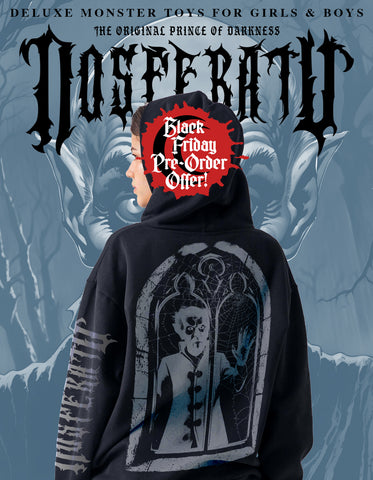 Let that special Monster lover know you care with our special Black Friday Exclusive Nosferatu T-Shirt, or our Premium Oversized Hoodie that arrives in time for your holiday frightivities! See our Coffin Creeps product page for details!
