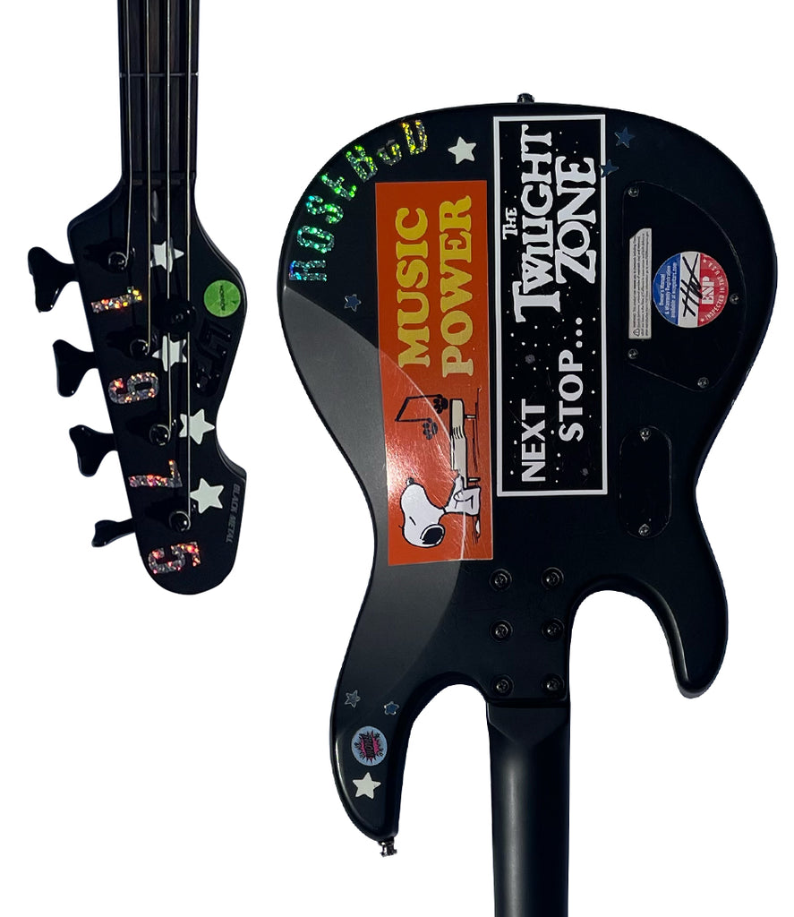 Modeled after a lost guitar from my youth, this bass was a studio warrior and backstage jammer before it became the bass Thunderkiss 65 on last tour. A few replicas were used on tour and sold, but this one was the model and used a lot. Gig bag included.