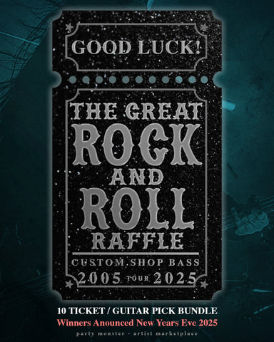 - The purchase of 10 tickets or more earns you a 10 piece guitar pick set, sent directly to you immediately. Picks from 2024-2025 tours are included. The remaining picks are mystery selections. To receive the picks, you must provide a mailing address when you create an account. Picks will be sent standard mail, shipping paid by Party Monster LLC.