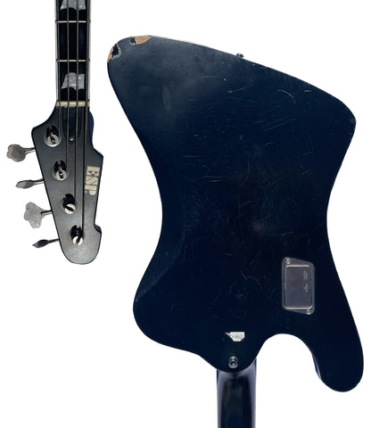 A neck-through ESP Phoenix II with active EMG pickups. Custom one of a kind graphic. There was only one of these ever made, its also opened the show a lot as the 'Superbeast' bass for a long time. One of the more memorable basses in the Zombie show arsenal!
